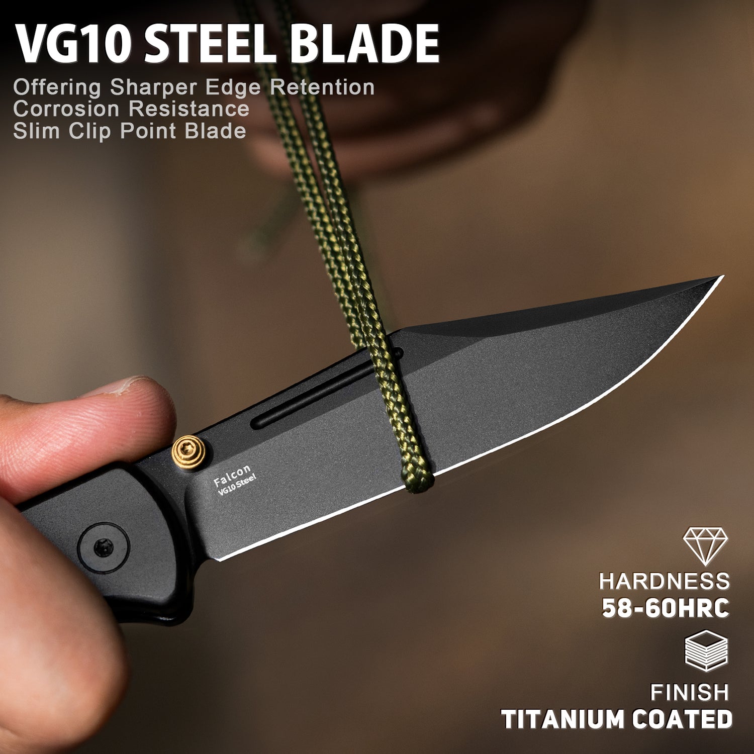 LOTHAR Falcon 3,43" VG10 Stahlklinge Knopfverschluss EDC Taschenklappmesser mit Clip