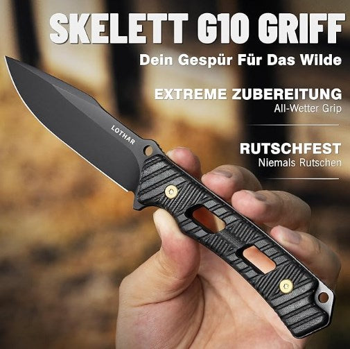 LOTHAR KA52 Jagdmesser, 9.8cm Full Tang Outdoor Messer aus D2 Stahl, G10 Griff Survival Messer mit Kydex Scheide,Bushcraft Messer für Outdoor Liebhaber