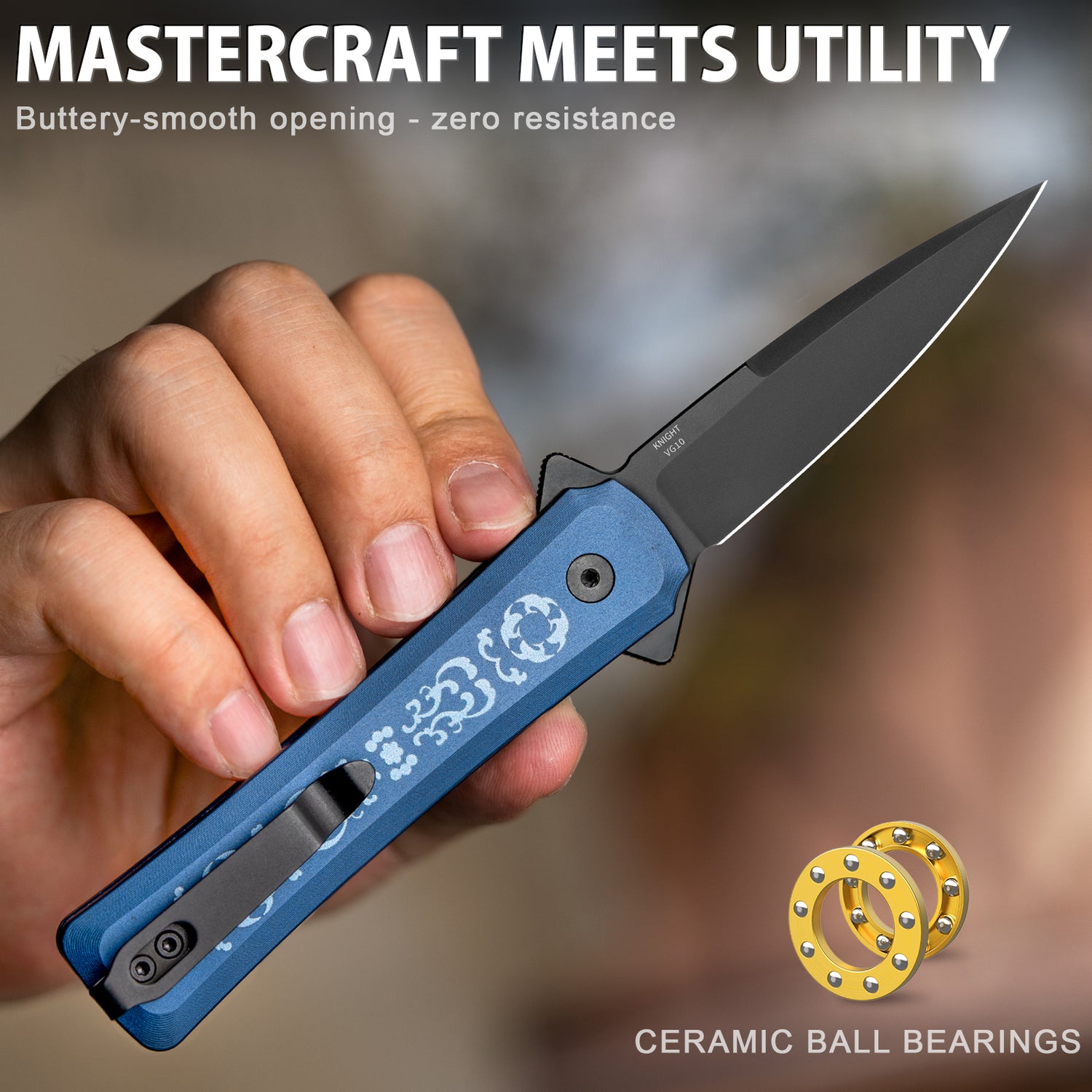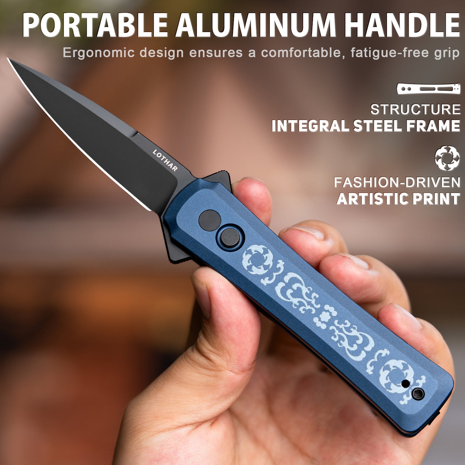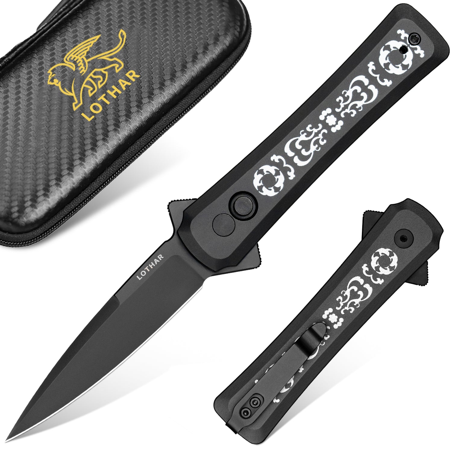 LOTHAR KNIGHT 2,9 Zoll VG10 Stahlklinge, Flipper-Knopfverschluss, Taschenmesser mit Clip