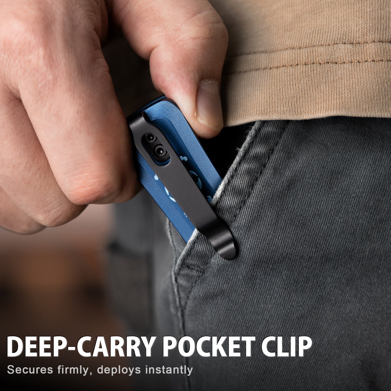 Schnelles Öffnen mit einer Hand – Dual-Action-Flipper mit Druckknopfverriegelung für sofortiges Ausklappen; sichere Verriegelung in 0,08 Sekunden.
