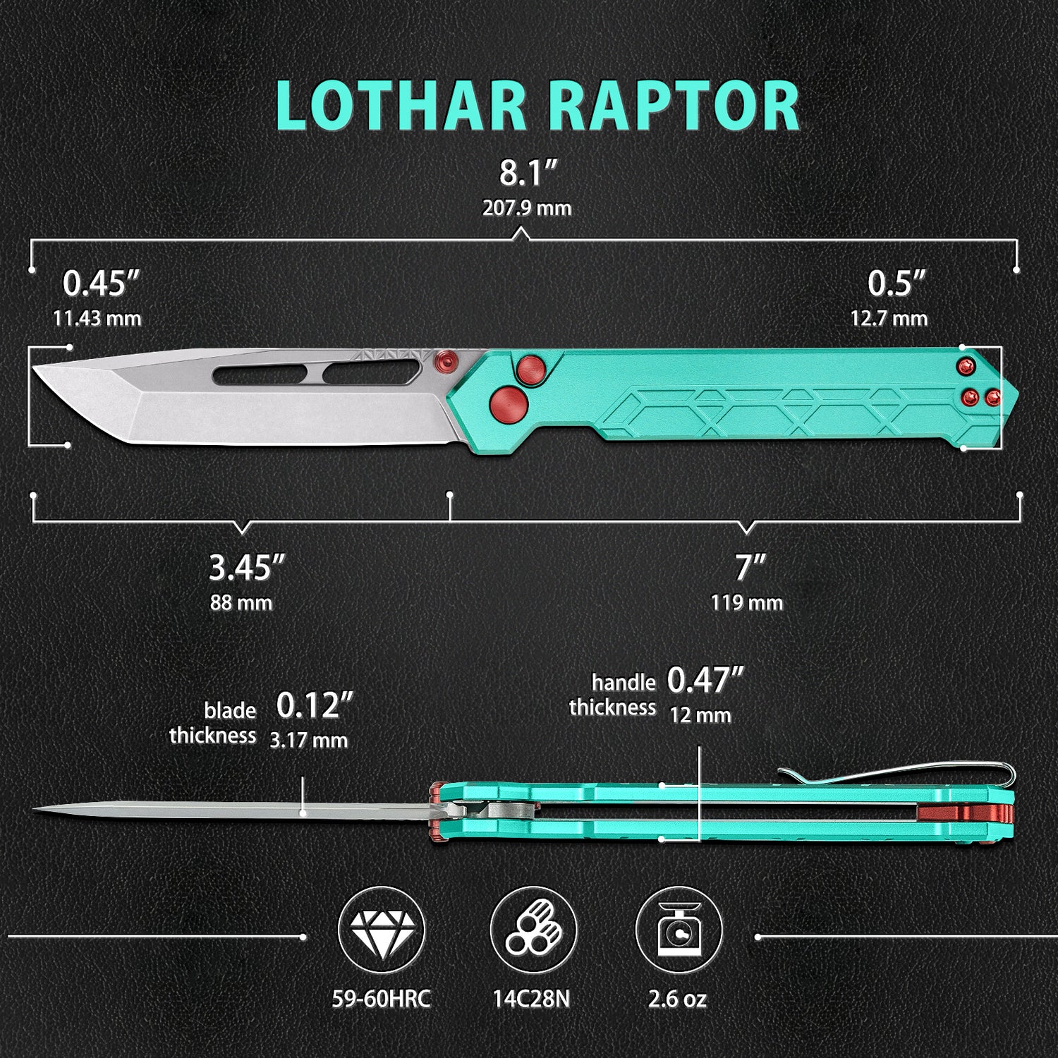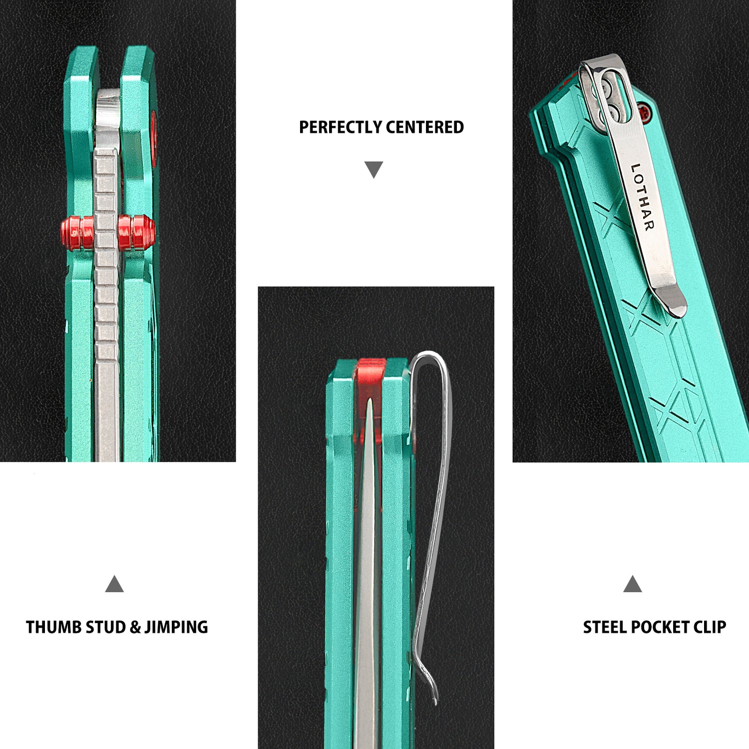 LOTHAR RAFAEL Taschenmesser, 8.8 CM 14C28N Stahl Klinge Klappmesser, Einhandmesser mit Aluminium Griff, Button Lock EDC Messer mit Clip, Sammlung & Geschenk
