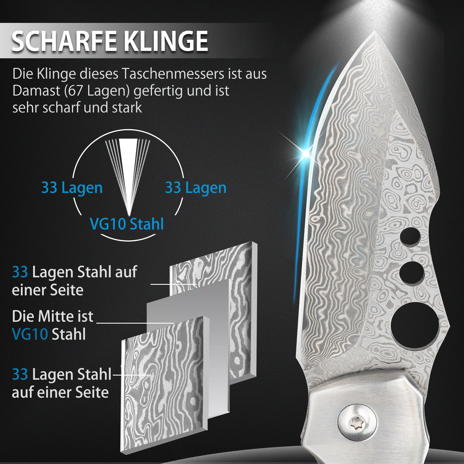 Handgefertigt 67-lagige Damaststahlklinge, 7 cm lang, 3 mm stark
